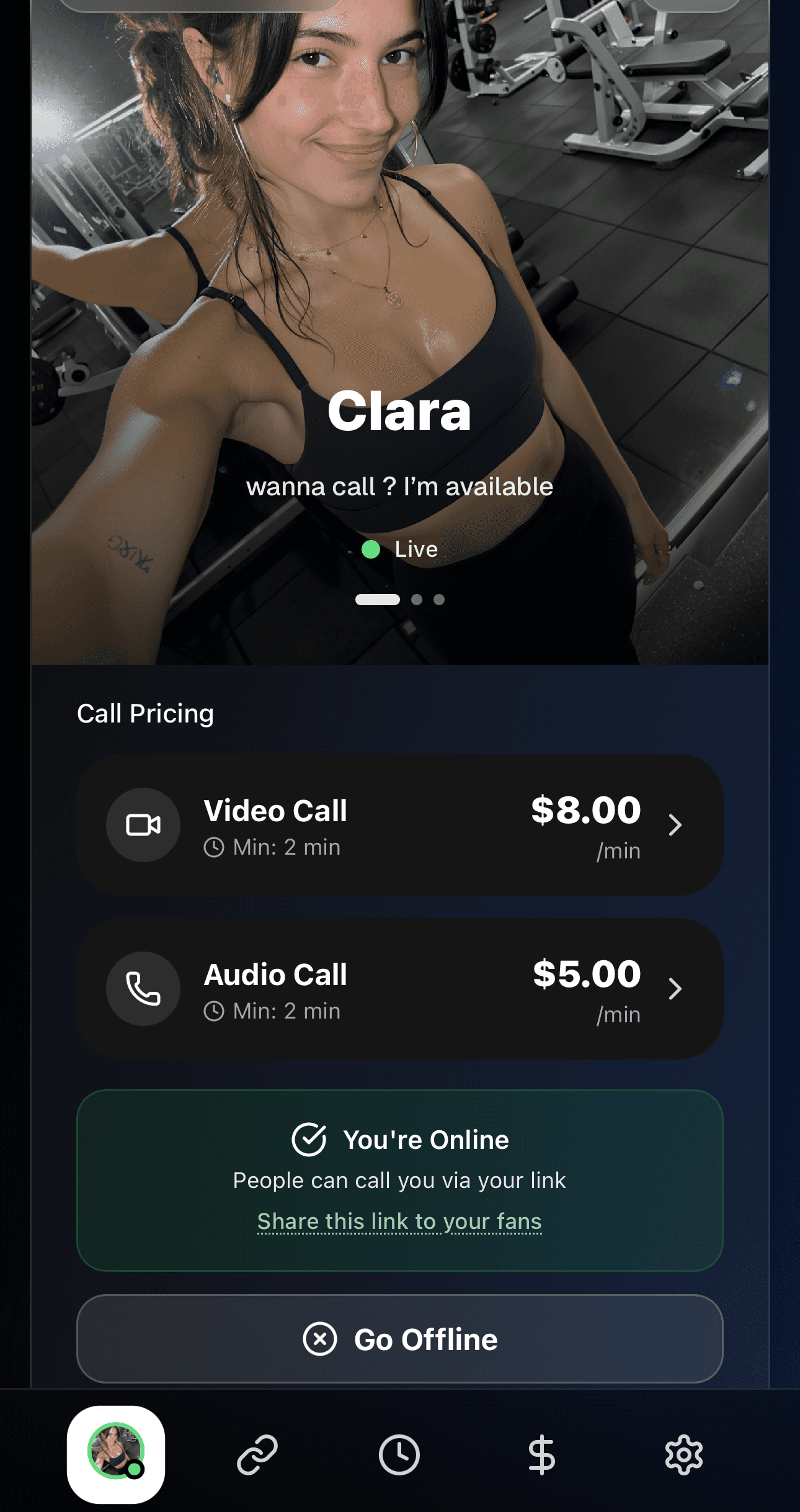 Say hello to Pay-Per-Call, a flexible way to turn time into income Thousands of creators are monetizing smarter, it’s your turn.